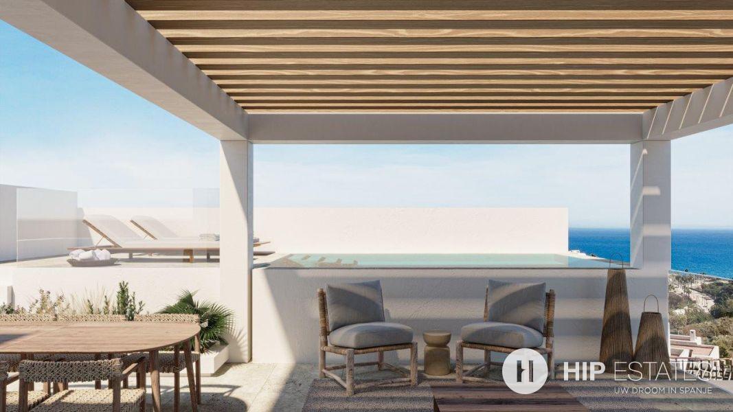 Er zijn appartementen met 1, 2 en 3 slaapkamers, waarvan sommige penthouses zijn voorzien van een zwembad op het dak en allemaal met een prachtig uitzicht op zee.