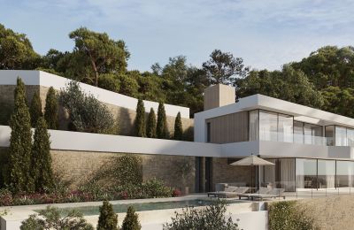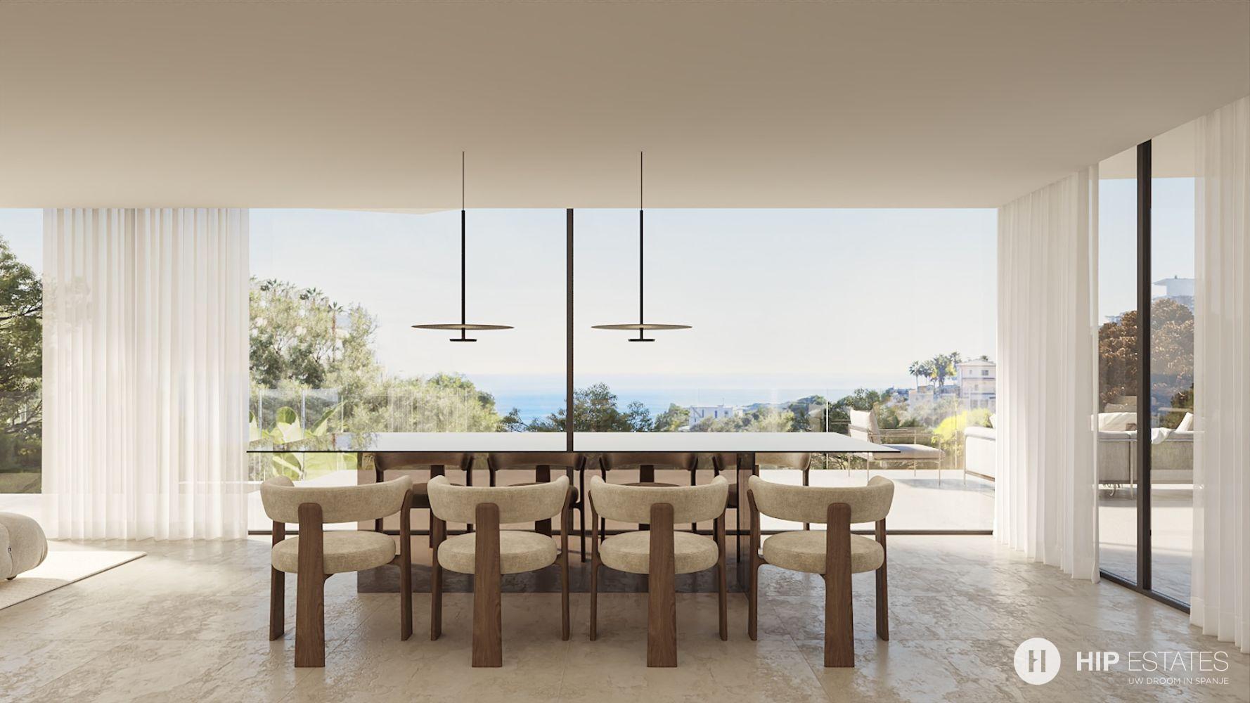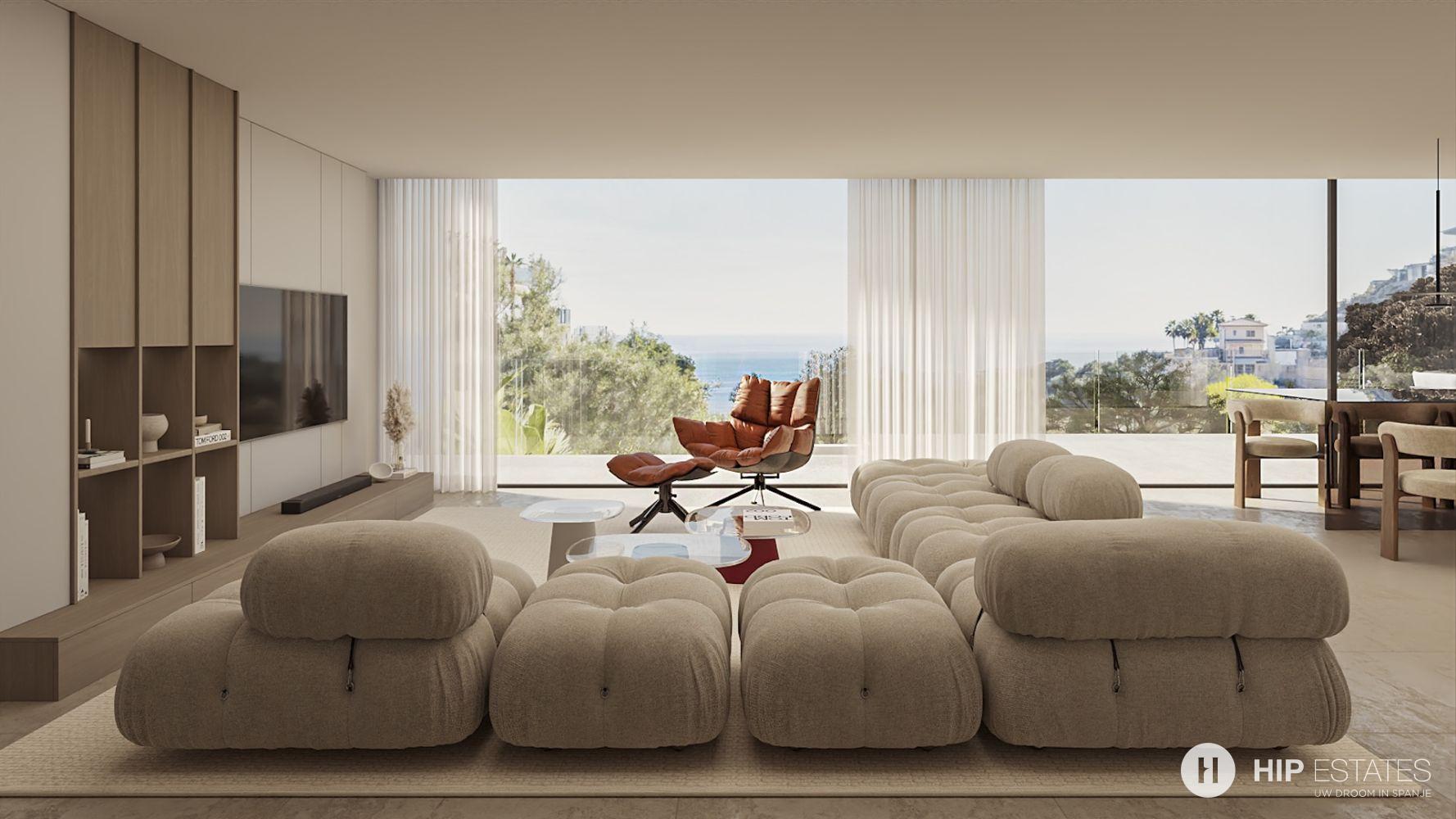 Vanaf elke verdieping geniet u van een panoramisch uitzicht op de Middellandse Zee, waardoor het buitenleven en de natuurlijke omgeving naadloos aansluiten bij de moderne architectuur van de woning. Grote glaspartijen zorgen voor een overvloed aan daglicht en creëren een open en luchtige sfeer in het hele huis.