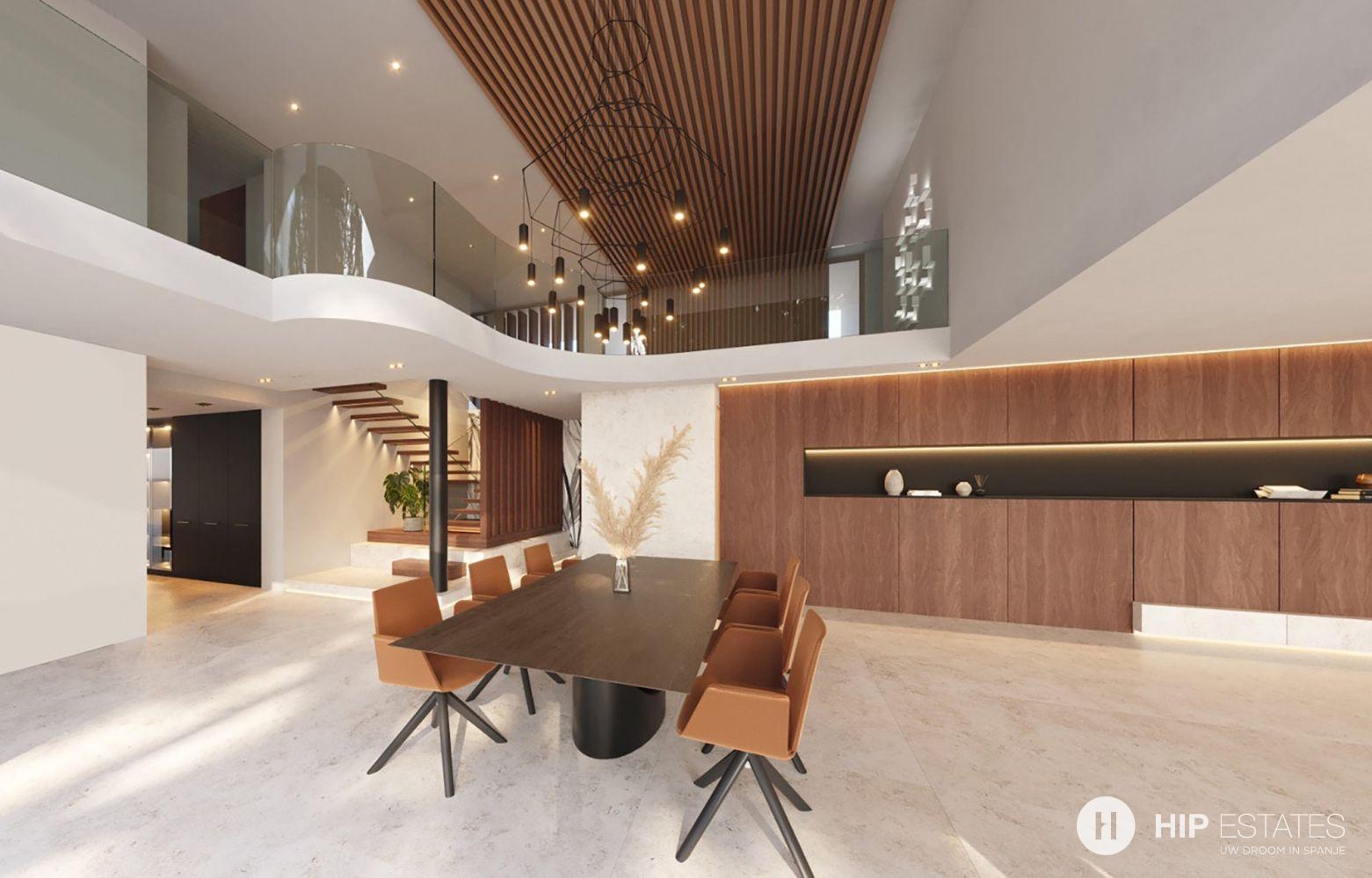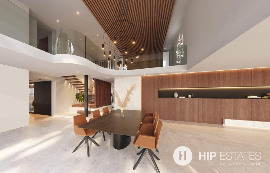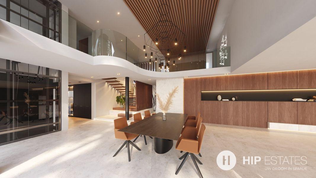 In de keuken, waar we nog een eetkamer vinden, zijn de uitzichten de hoofdrolspelers dankzij de glazen wanden die het een aangename warmte geven. Zowel de eetkamer als de keuken geven toegang tot het indrukwekkende terras met solarium en ontspanningsruimte die worden aangevuld met een groot infinity zwembad met jacuzzi.