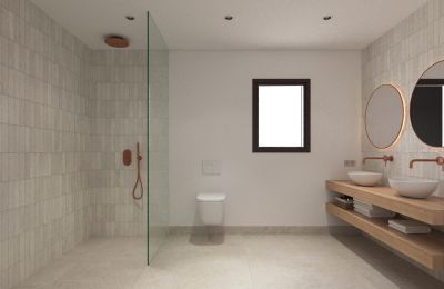 Op de bovenverdieping bevinden zich drie comfortabele slaapkamers die rust en privacy bieden. De twee badkamers combineren modern design met praktische functionaliteit. De master bedroom beschikt bovendien over een eigen en-suite badkamer.