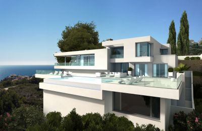 Een verblindend witte woning, gelegen op een unieke enclave. De woning onderscheidt zich vanwege de prachtige vergezichten: aan de voorzijde uitzicht op de Middellandse Zee en het eiland Ibiza en naar omlaag een perspectief van de urbanisatie die bij zonsondergang op haar mooist is.