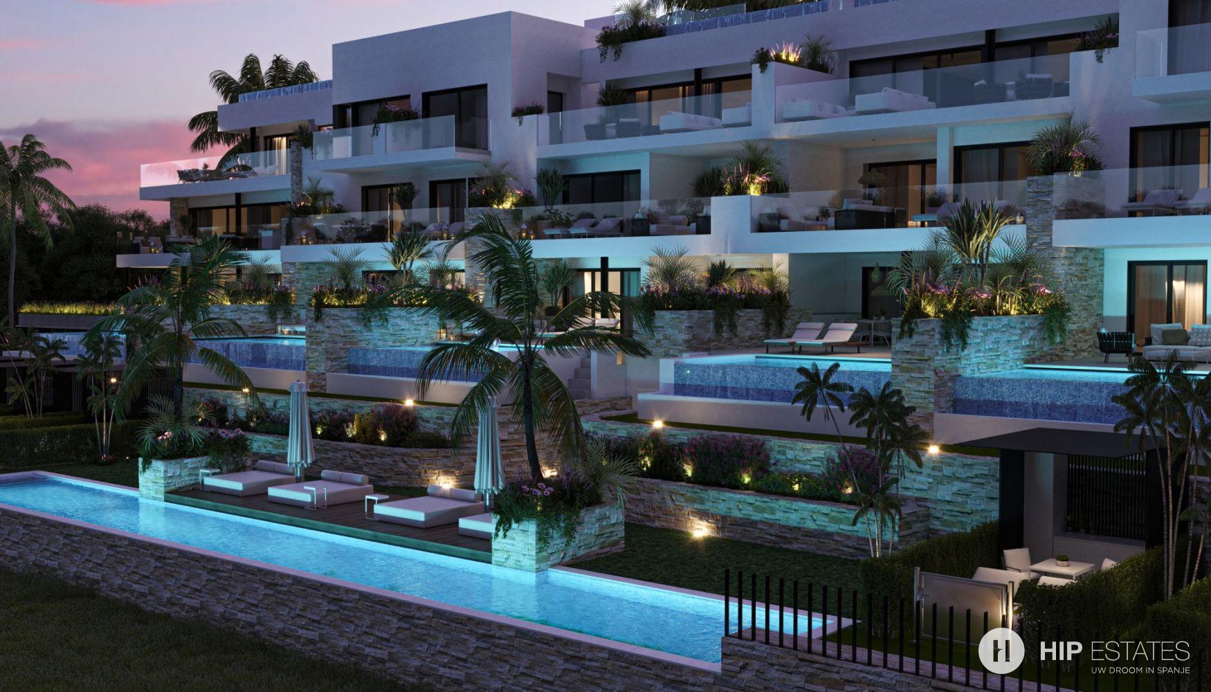 Elk gelijkvloers appartement geniet van een privaat zwembad. Evenals de penthouses hebben een privaat zwembad gelegen op het dakterras.