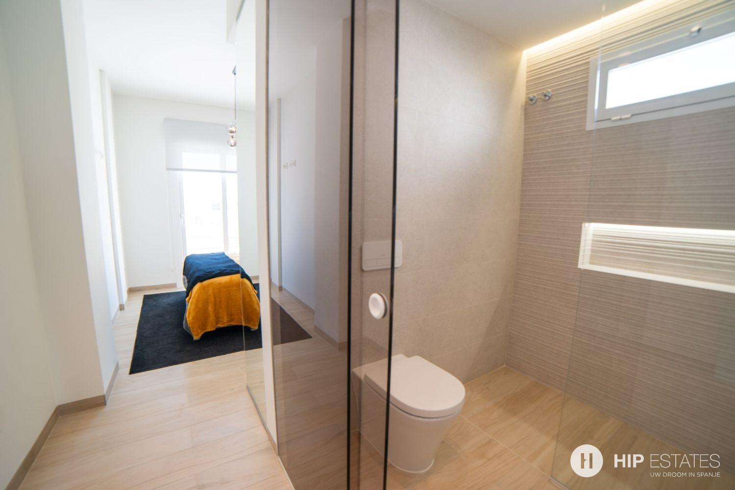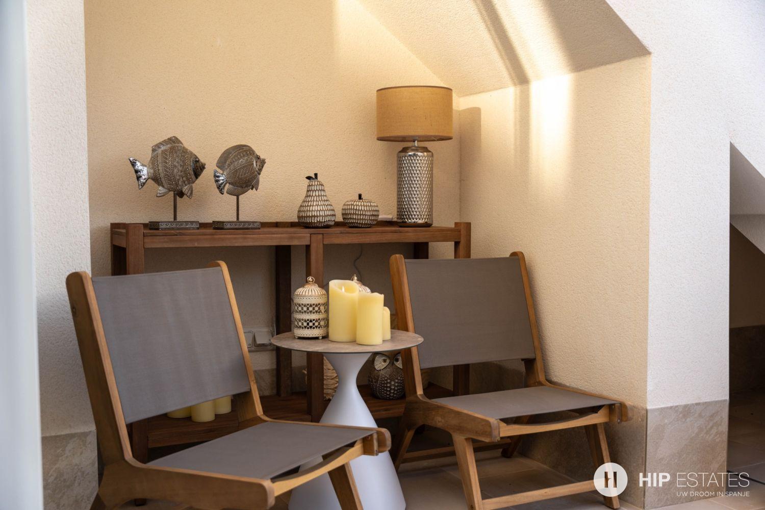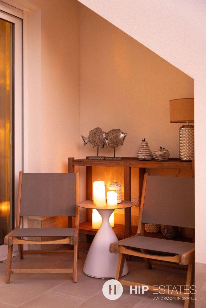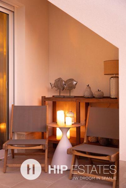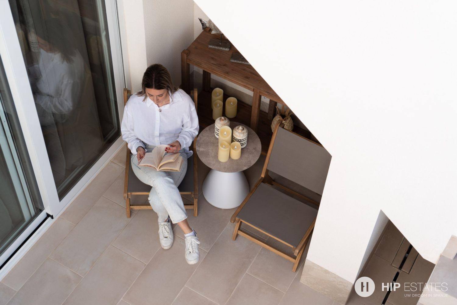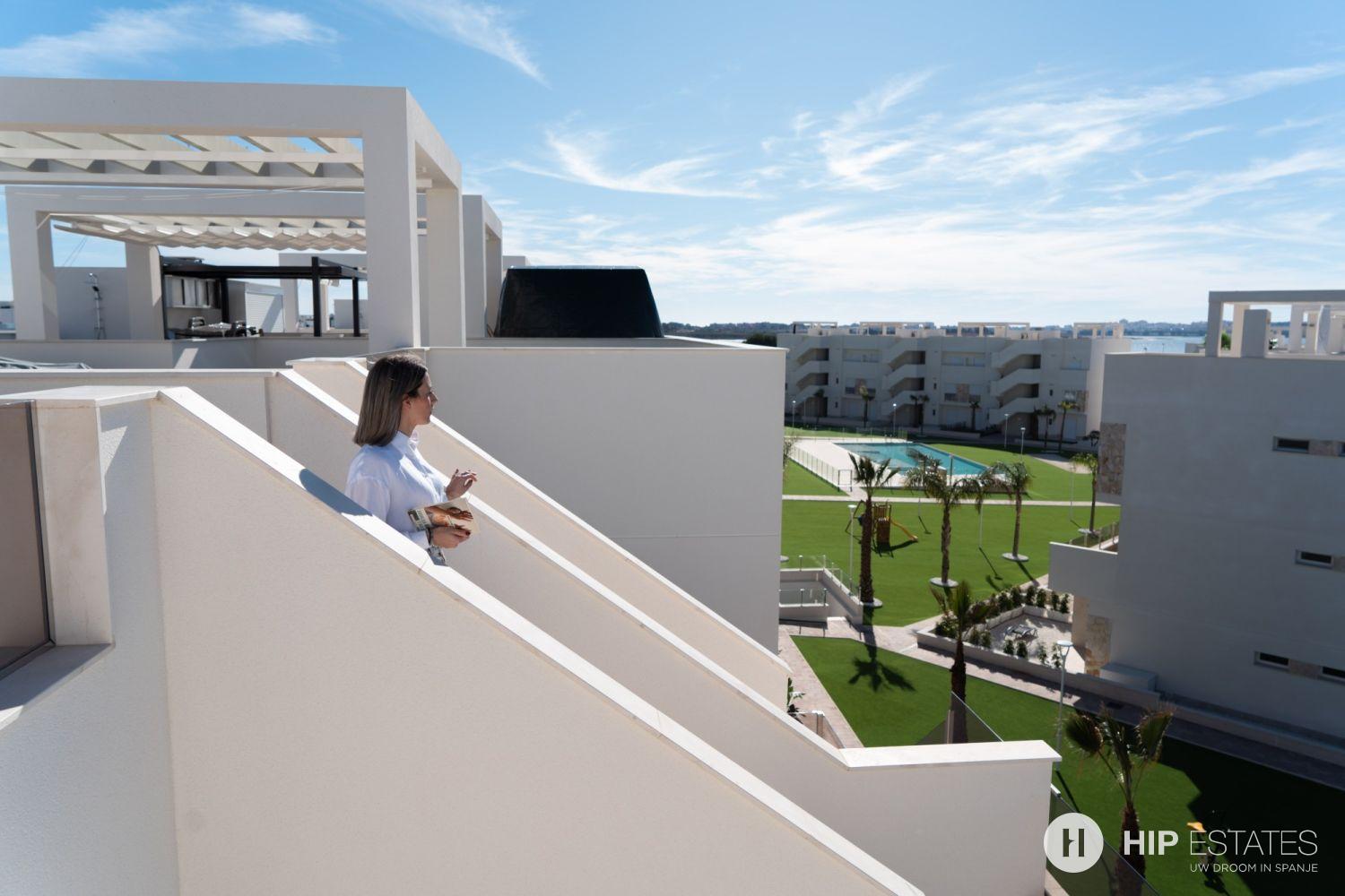 Elk appartement is voorzien van grote zonneterrassen met glazen afsluitingen, waar u kunt genieten van het uitzicht op de prachtig aangelegde binnentuin en zwembaden.