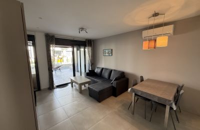 Het appartement is gelegen op de gelijkvloerse verdieping en beschikt over een aangenaam privéterras waar u kunt genieten van het mediterrane klimaat. Binnenin vindt u een lichte en ruime leefruimte met een open keuken, ideaal voor gezellige momenten met familie en vrienden. Het appartement biedt daarnaast twee comfortabele slaapkamers en twee volledig ingerichte badkamers, waardoor het perfect geschikt is zowel voor permanent verblijf als voor vakantieverhuur.