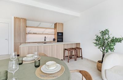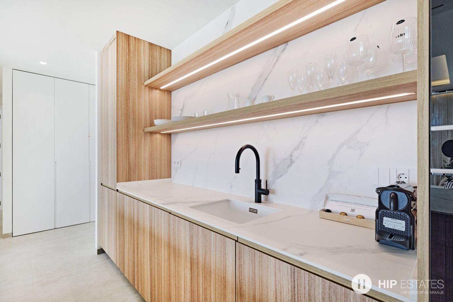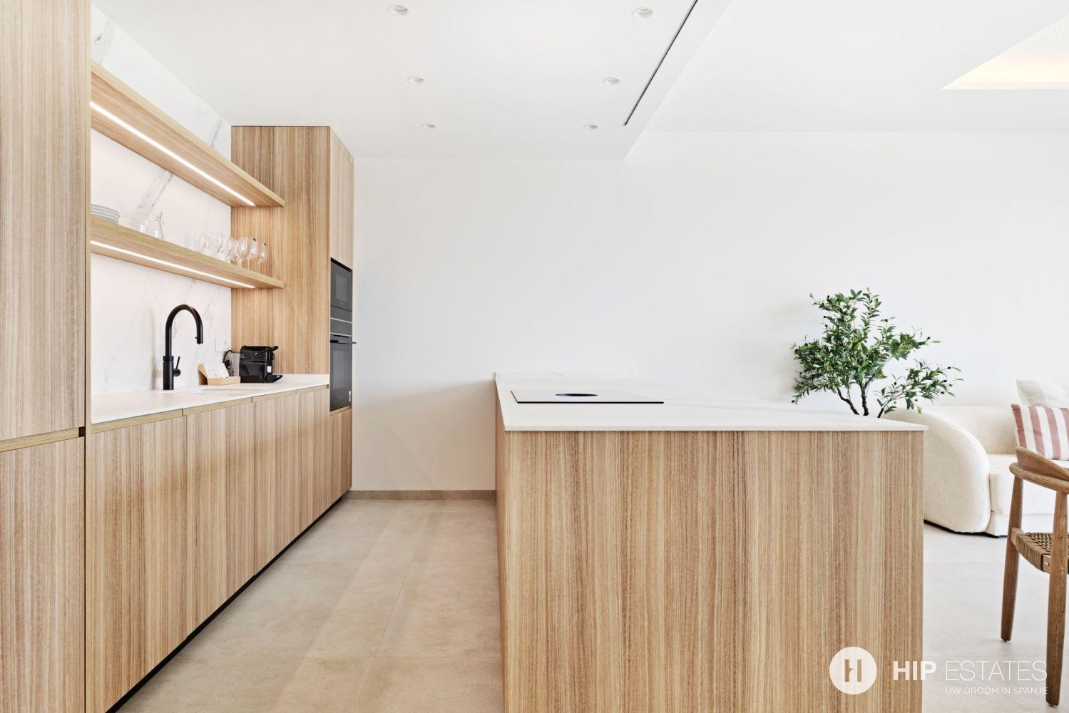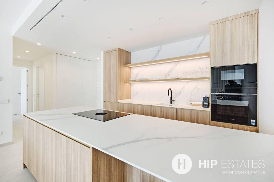De keuken is modern en functioneel, perfect geïntegreerd in de leefruimte, en sluit aan bij de hoge afwerkingsgraad die in het volledige appartement wordt doorgetrokken. Elk detail is zorgvuldig gekozen met oog voor kwaliteit, duurzaamheid en esthetiek.