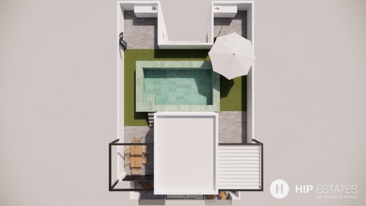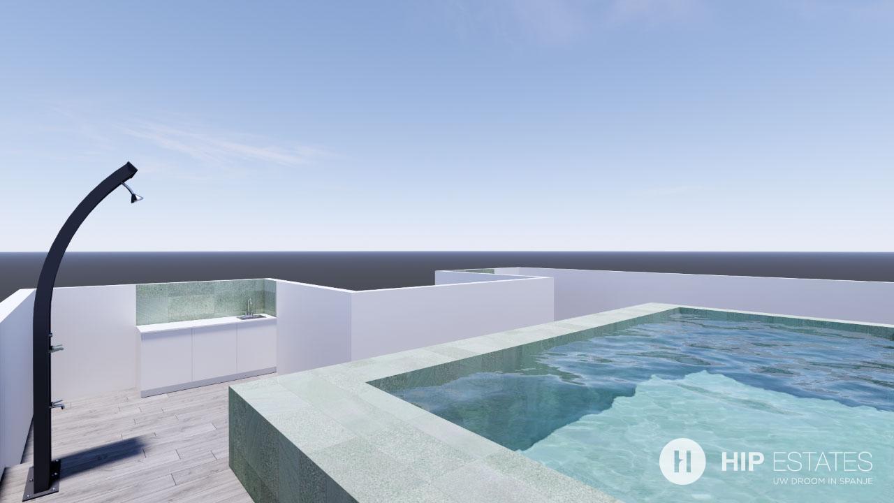 Het absolute hoogtepunt van dit project is het gemeenschappelijke dakterras met zwembad, waar bewoners kunnen genieten van panoramische uitzichten en ultieme ontspanning.