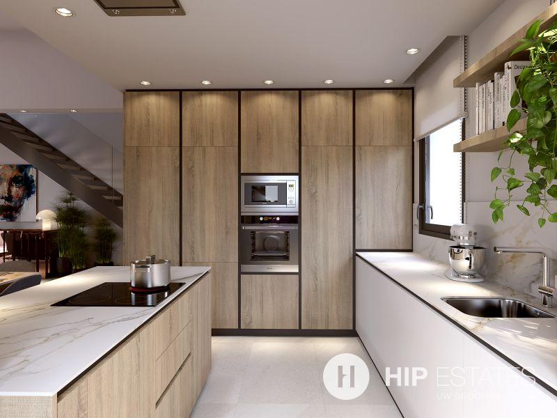 De villa's genieten van een ruime en lichtrijke woon- en eetkamer die aansluit op de keuken met keukeneiland vanwaar u toegang heeft tot het deels overdekte terras.