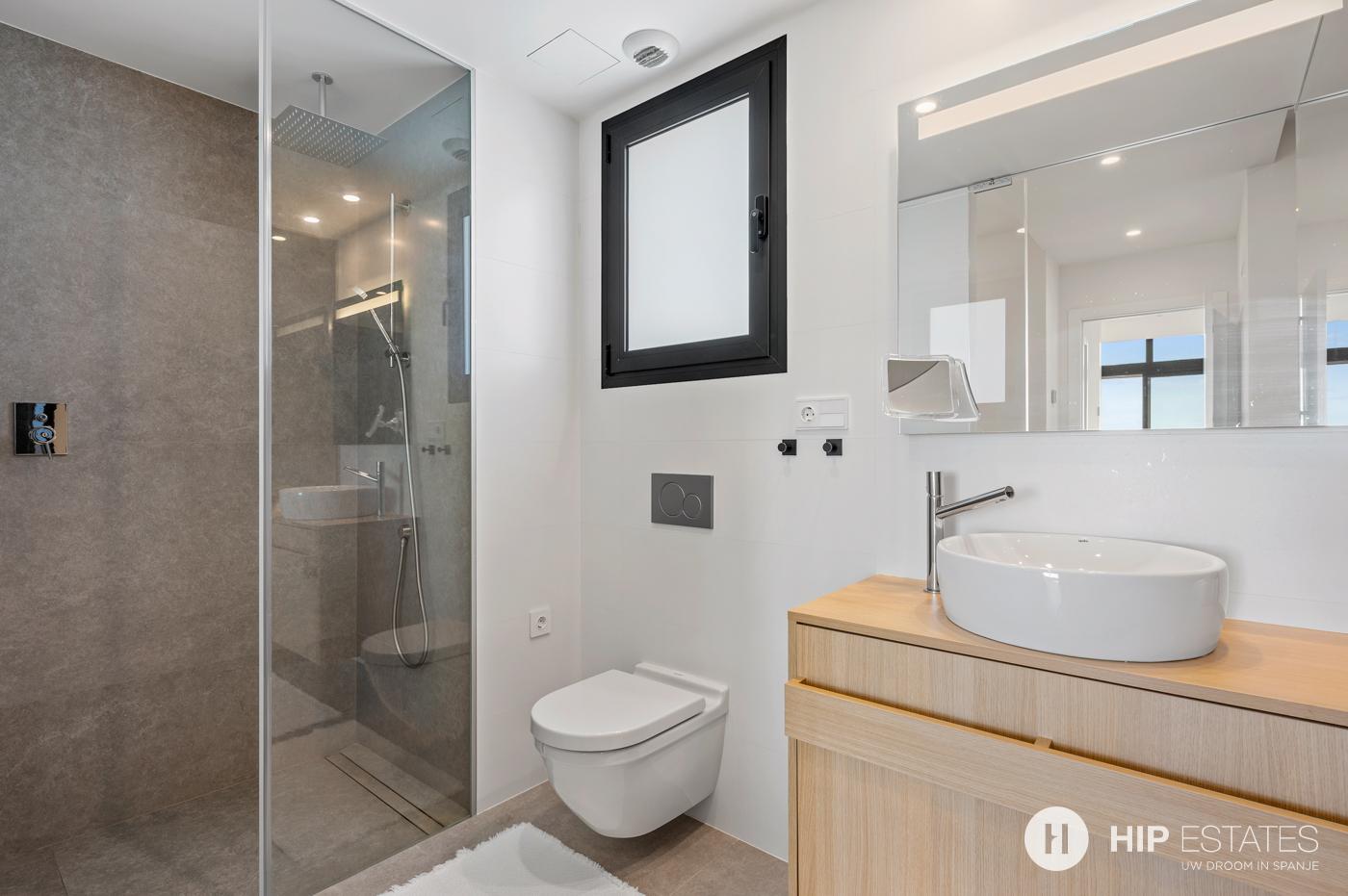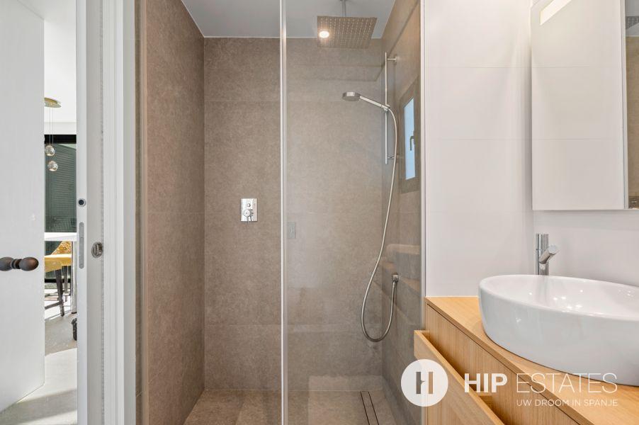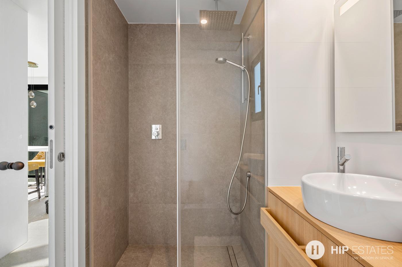 - Buitendouche, buitenkeuken en pergola met zonneluifel op het dakterras