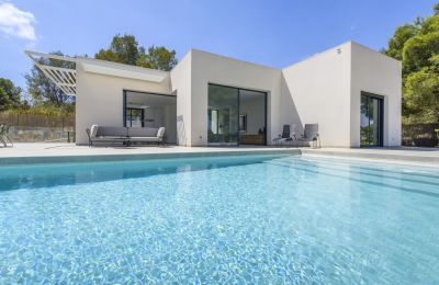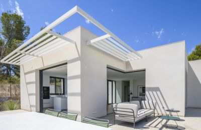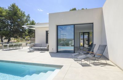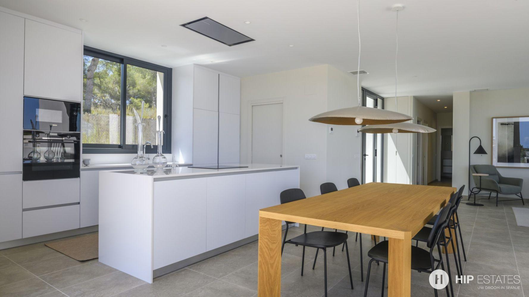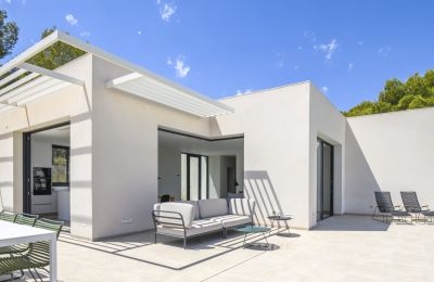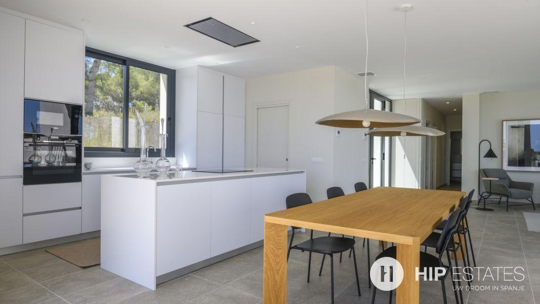 De villa is ontworpen met aandacht voor natuurlijke lichtinval en een soepele overgang tussen binnen- en buitenruimtes. De strakke, hedendaagse lijnen en hoogwaardige materialen zorgen voor een luxe uitstraling. Elke ruimte nodigt uit tot rust en ontspanning, terwijl grote ramen panoramisch uitzicht bieden op de mediterrane omgeving.