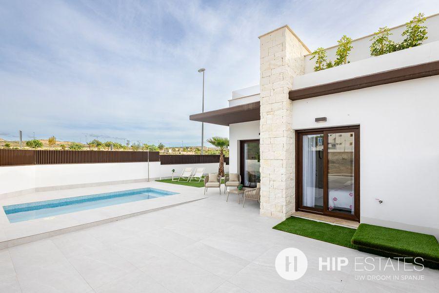 De villa’s liggen op slechts 20 minuten rijden van de stranden van Orihuela Costa, waar je kunt ontspannen aan de azuurblauwe Middellandse Zee. Ook het bruisende centrum van Torrevieja ligt op korte afstand, met een breed scala aan winkels, restaurants en uitgaansgelegenheden. De luchthaven van Alicante is binnen 40 minuten bereikbaar.