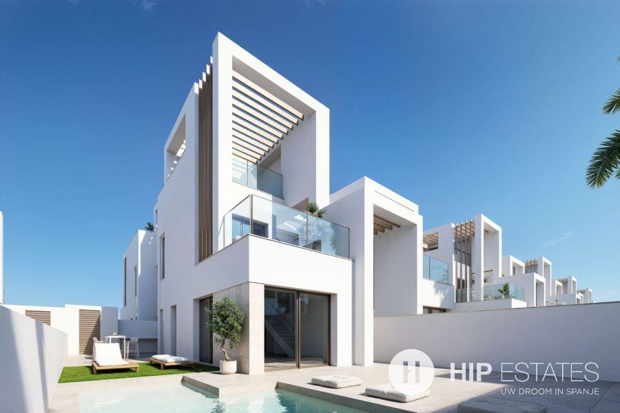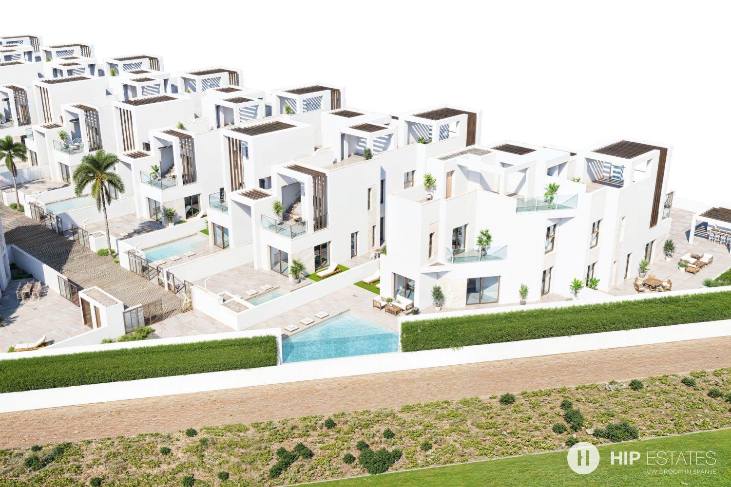 Ontdek dit exclusieve project van 37 moderne nieuwbouwvilla’s, gelegen op de prestigieuze Serena Golf in Los Alcázares. Deze stijlvolle woningen combineren hedendaagse architectuur, comfort en een uitstekende ligging op slechts 300 meter van het warme en kalme water van de Mar Menor.