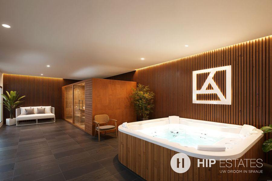 Daarnaast kunnen bewoners genieten van extra faciliteiten die gedeeld worden met een naburig project, waaronder prachtig aangelegde tuinen, een gemeenschappelijk zwembad, een spa, fitnessruimte en sauna.