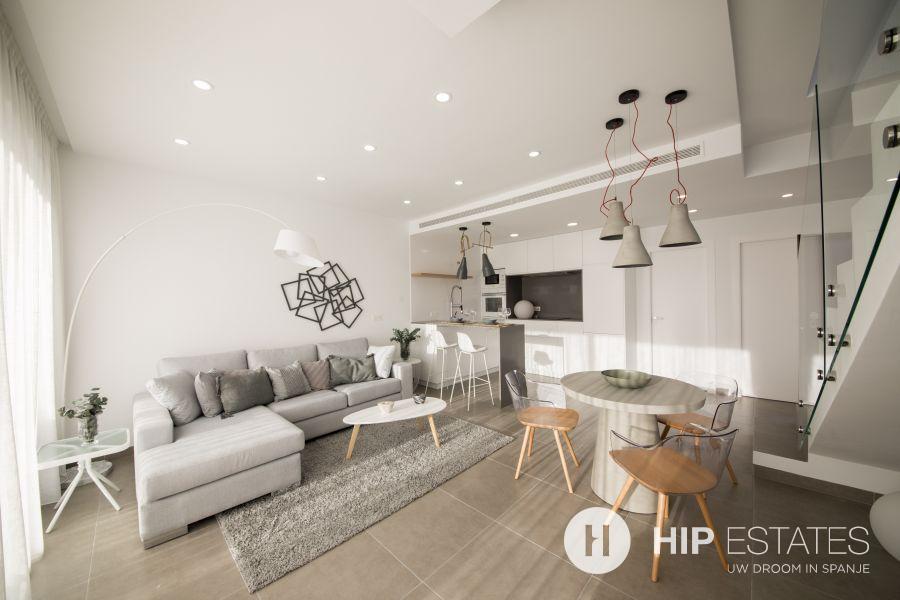 Deze villa's zijn gebouwd met hoogwaardige materialen. Het huis heeft op de begane grond een woonkamer met open keuken, een tweepersoons slaapkamer, een badkamer en een terras met toegang vanuit de woonkamer naar de tuin en het zwembad. Op de bovenste verdieping zijn er 2 slaapkamers, 2 badkamers, en een terras. Optioneel kan een dakterras voorzien worden.