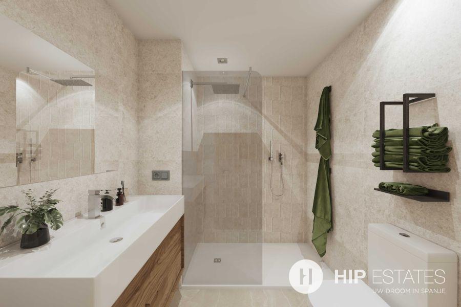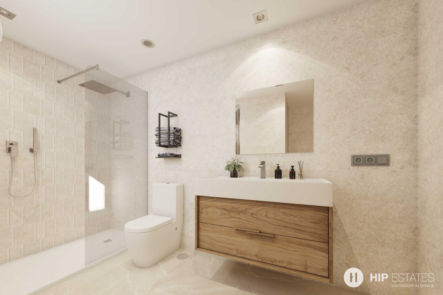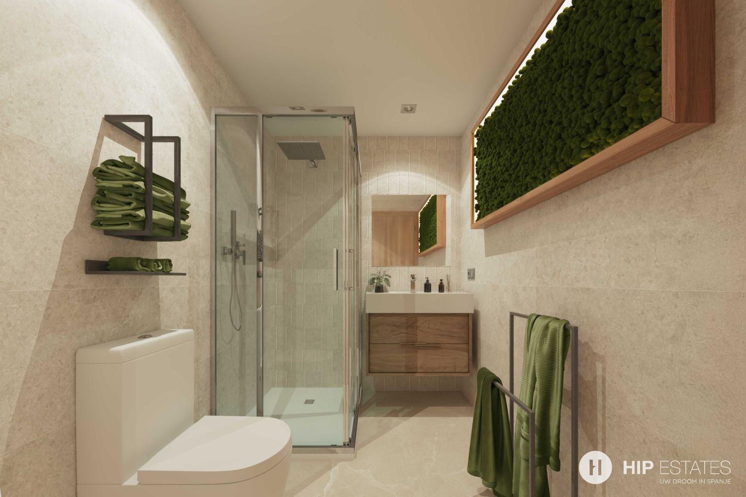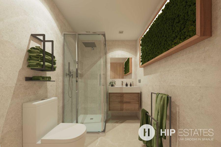 - Volledig uitgeruste badkamers met meubel, spiegel en douchewand