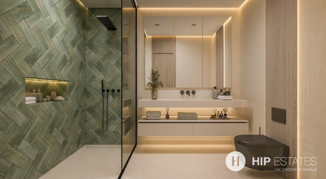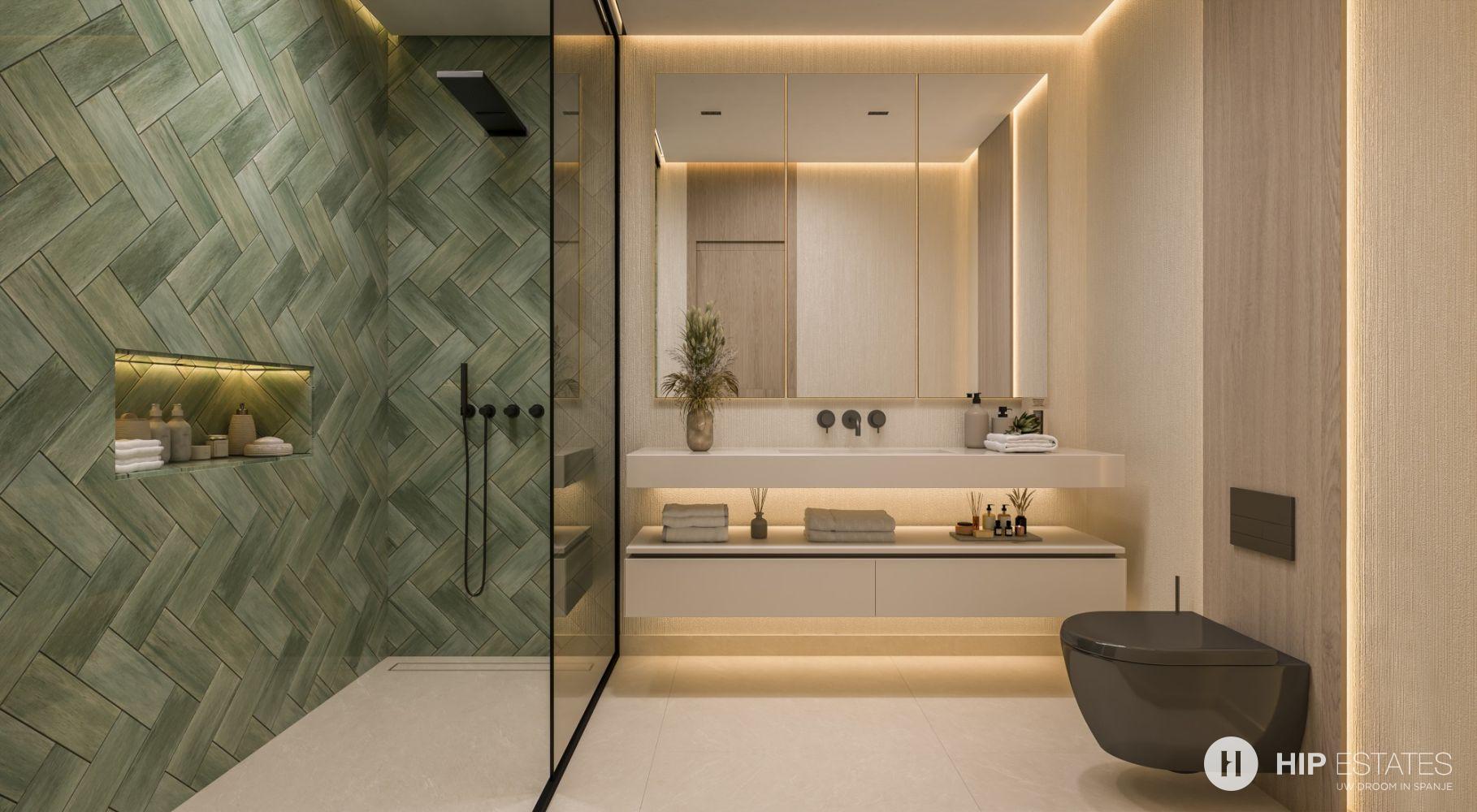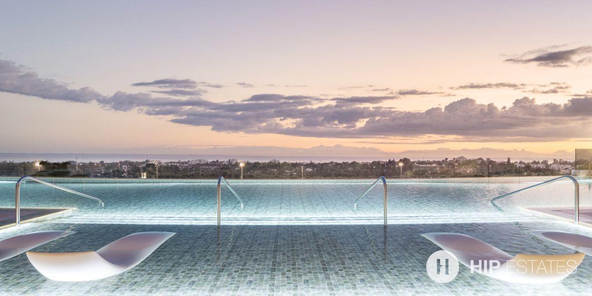 De gelijkvloerse appartementen en penthouses beschikken over een privézwembad, terwijl er ook een elegante gemeenschappelijke infinity pool is die het resortgevoel versterkt.