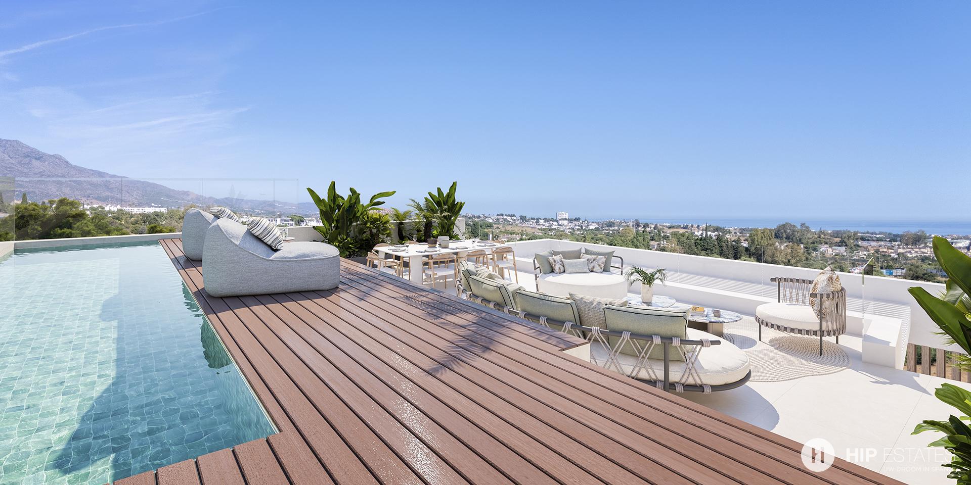 Welkom bij Solenne, een exclusief nieuwbouwproject inBenahavís, waar architectuur, natuur en levenskwaliteit samenkomen. Hier woon je op een bevoorrechte hoogte aan de Costa del Sol, met panoramische vergezichten over de groene heuvels, de Middellandse Zee en enkele van de mooiste golfbanen van Europa.